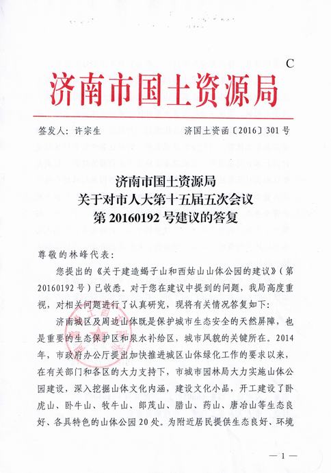 关于转发济南市国土资源局对我公司市人大代表的答复