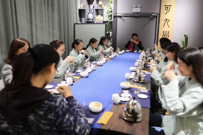 课程由气若幽兰的国家级评茶师大可老师亲自讲解和演示,大可老师从茶的历史、茶礼的由来开始讲起,并亲自示范行茶十式。大可老师讲到,行茶的过程应当行云流水,投茶、注水、出汤每一个动作背后都有余不尽的意味,济南监理的佳人们跟着老师认真的学起了一招一式,两个多小时的课程里,学会了基本的行茶,下面就请您品鉴一杯济南监理的佳人们为您沏的茶。