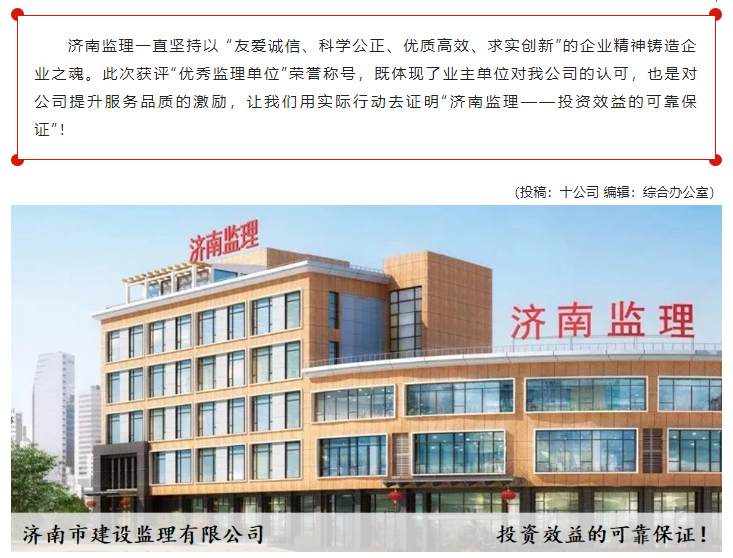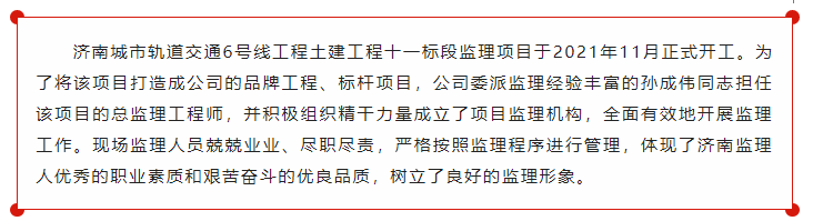 公司获评济南轨道交通集团建设投资有限公司2021年度“优秀监理单位”
