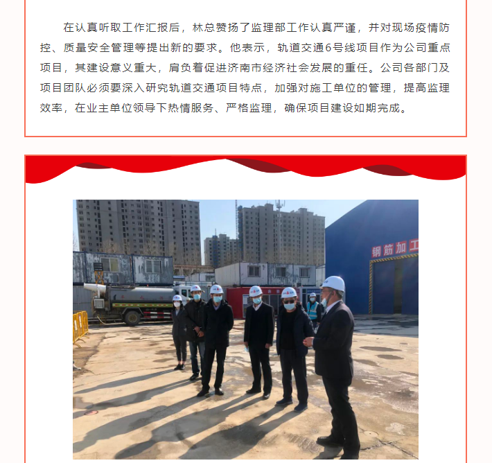 济南监理党委书记林峰带队到轨道交通6号线项目开展调研慰问