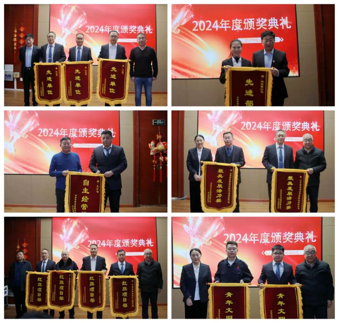 会上通报表彰了2024年度先进集体及个人,颁发锦旗、证书。对2024年度先进党支部、先进工会分会、先进团支部、优秀共产党员、十佳职工、标兵、优秀经营经理、优秀总工、优秀信息宣传员、优秀网络管理员、优秀分公司业务主管、工会积极分子、巾帼之星、优秀团员及“青年文明号”进行表彰。