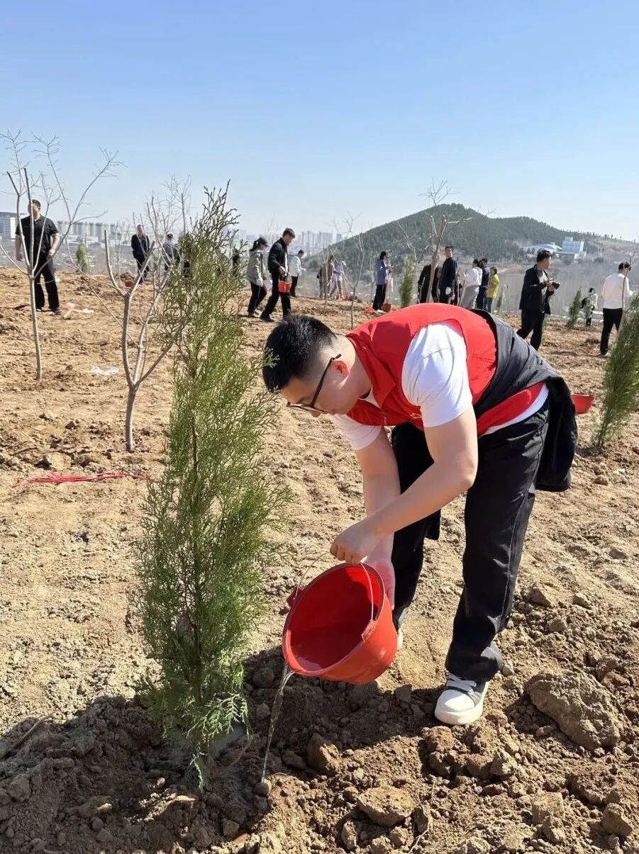 挥锹铲土、扶苗填坑、提水浇灌,每一步都一丝不苟。在明媚的春光下,大家齐心协力,种下一棵棵树苗。这些树苗承载着我们对绿色家园的美好期许,在未来将成长为守护泉城的绿色卫士,为生态环境增添一抹新绿。
